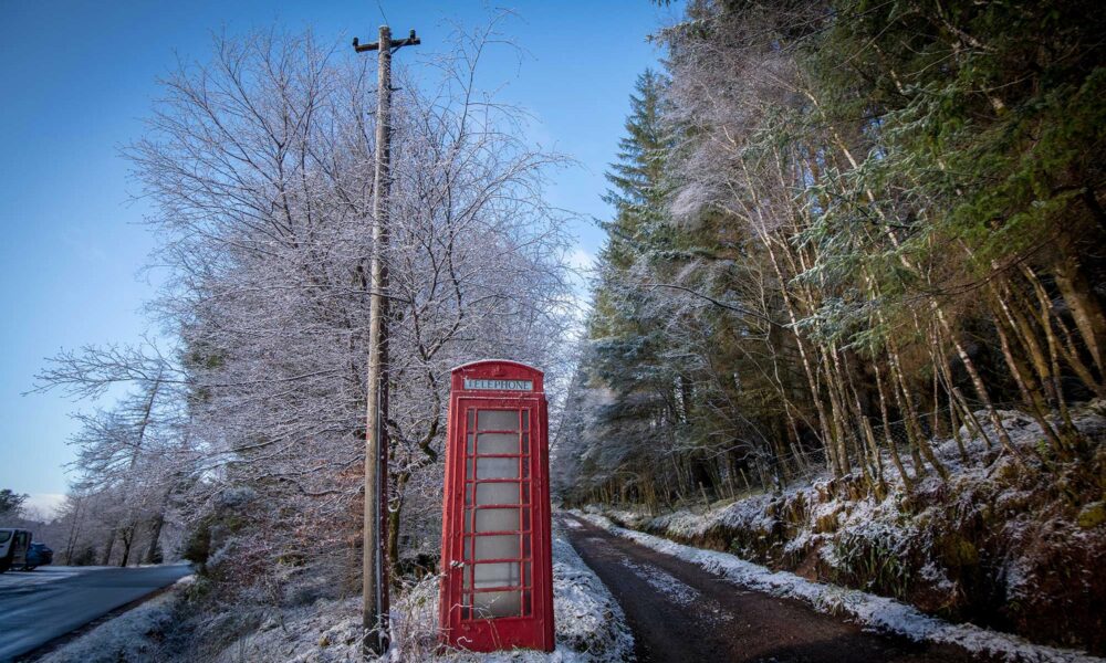 GPS 57.4818197, -5.329035Una baliza roja en las blancas montañas