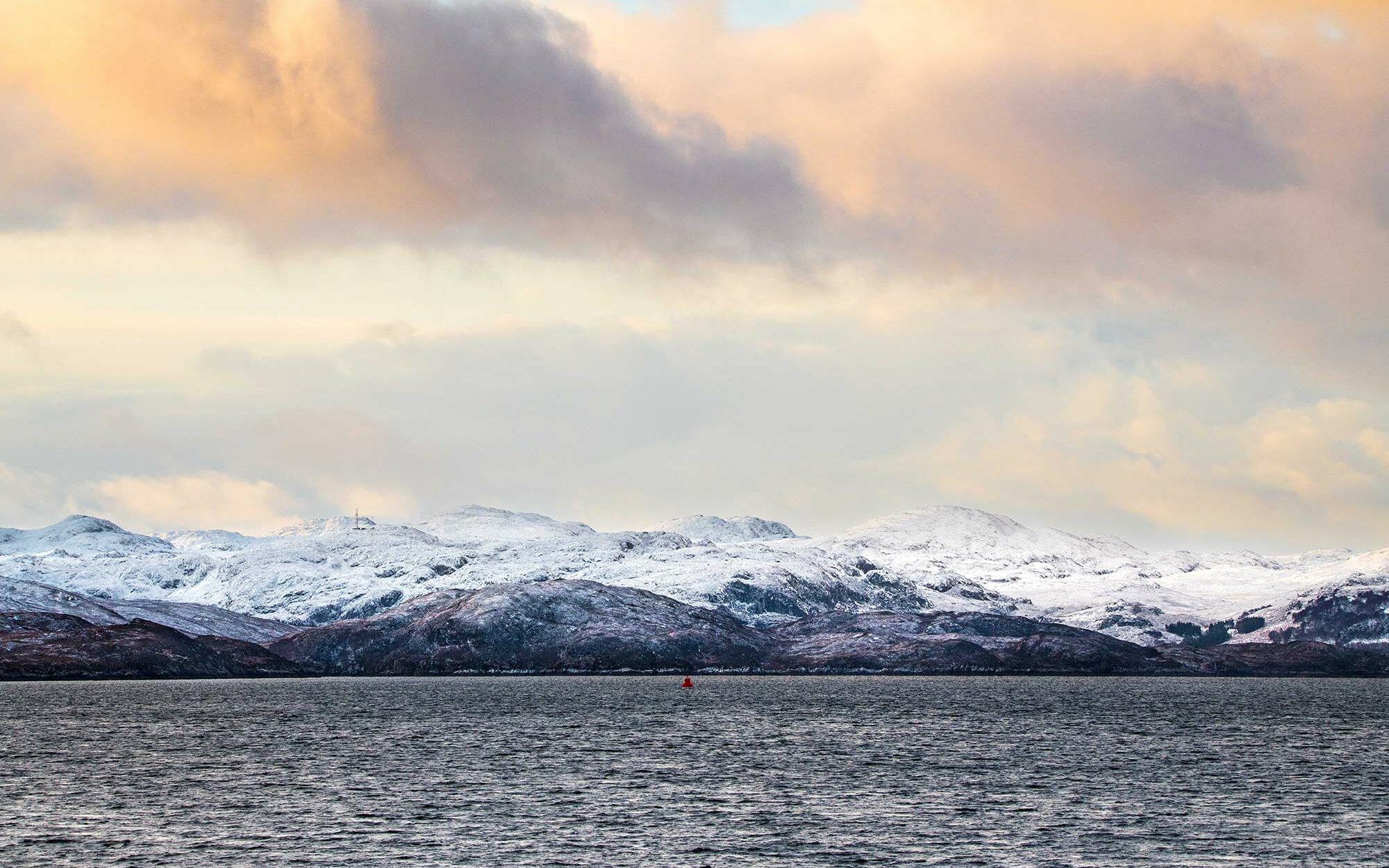 Al llegar a Aultbea desde Torridon, no sabía dónde fijar la vista. ¡O más bien no dejaba de mirar a todas partes! Por todos lados, ¡estaba rodeado! En frente, tenía el Loch Ewe, un gran loch abierto al mar. En el centro del loch, la isla de Ewe. Es la primera colina tras el pequeño puerto pesquero. Tras él, las montañas que bordean el Loch, con An Cuaidh que culminan a 296 m. A mi espalda, un espectáculo similar. Las cimas nevadas se suceden con una increíble regularidad: Beinn Alligin, Beinn Eighe, Slioch, An Teallach. Algunas de ellas culminan a más de 1000 metros, a pesar de encontrarse a pocos kilómetros del mar. Aunque en invierno las condiciones climáticas son difíciles, estoy seguro de que en verano se pueden realizar unas fantásticas rutas de senderismo.