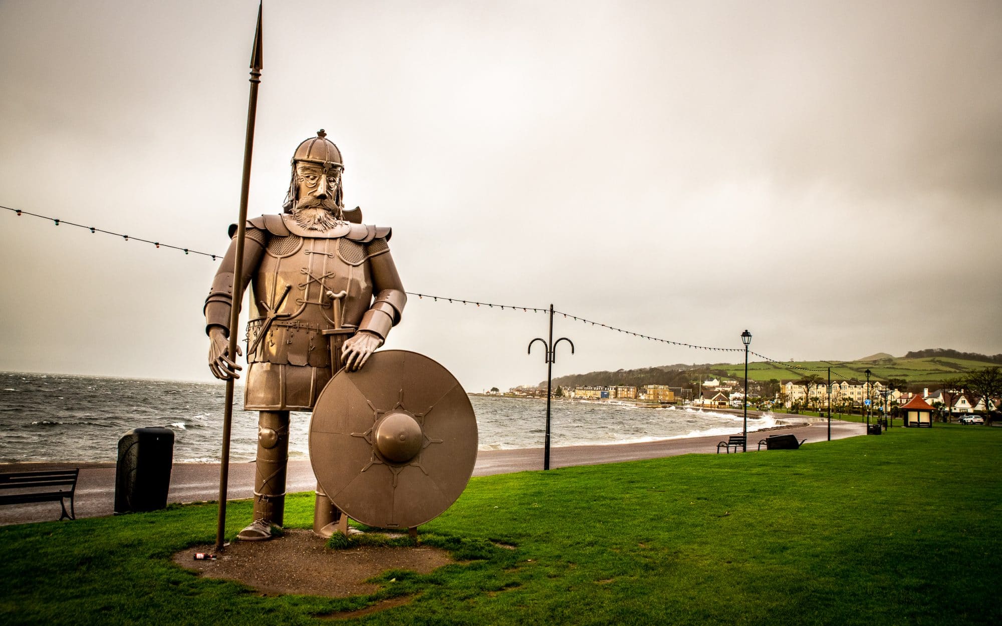 En Largs, en el año 1263, escoceses y vikingos libraron una cruenta batalla. Fue la última de este tipo en tierras escocesas. Por lo que he podido comprobar, la gente de Largs todavía no la ha olvidado y sigue rindiendo homenajes a esta batalla. En primer lugar, este vikingo de metal que posa orgulloso en la playa de Largs. Además, cada verano se celebra un Festival Vikingo de Largs: se reconstruye una aldea y uno se puede encontrar con «auténticos vikingos » del siglo XIII. Cuando pensamos en los vikingos, solemos imaginarnos a unos guerreros despiadados. Pero también me han contado que han realizado aportaciones importantes a la cultura escocesa. Por ejemplo, «kilt», la palabra escocesa por excelencia, tiene en realidad orígenes escandinavos.