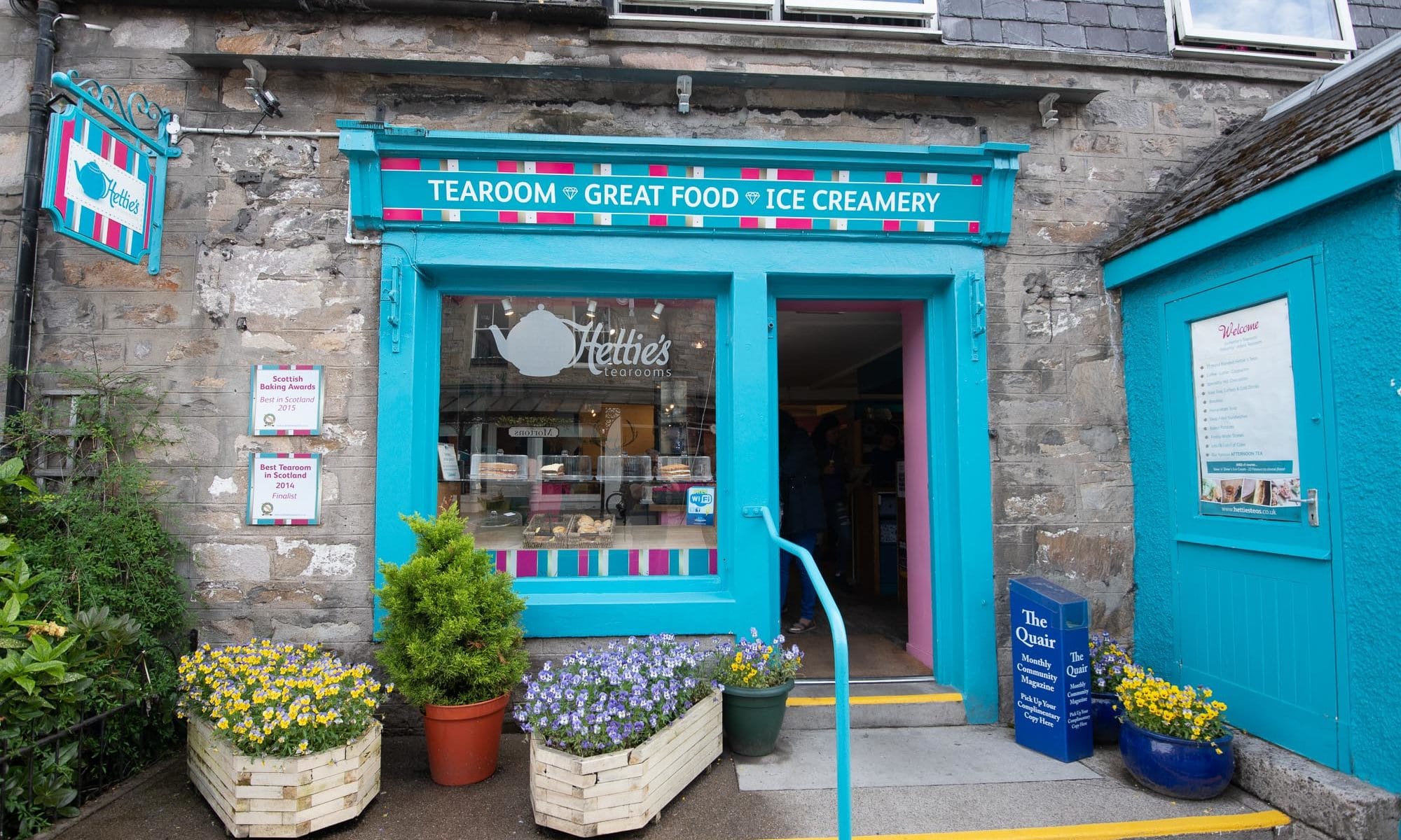 After a good hike in the Cairngorms, Hettie’s Tearooms is a happy sight in the centre of Pitlochry. Just seeing the facade of this tea room already makes me feel comfortable. At Hettie’s, they master the art of Afternoon tea. This tea is a gourmet pleasure because it is served with scones with jam and cream, delicious cakes and « wee » (small) sandwiches. This famous afternoon tea is traditionally served around 4pm. The fashion was launched by aristocrats in the 19th century. But today, it can be enjoyed at any time of the day. It is the case at Hettie’s anyway!
