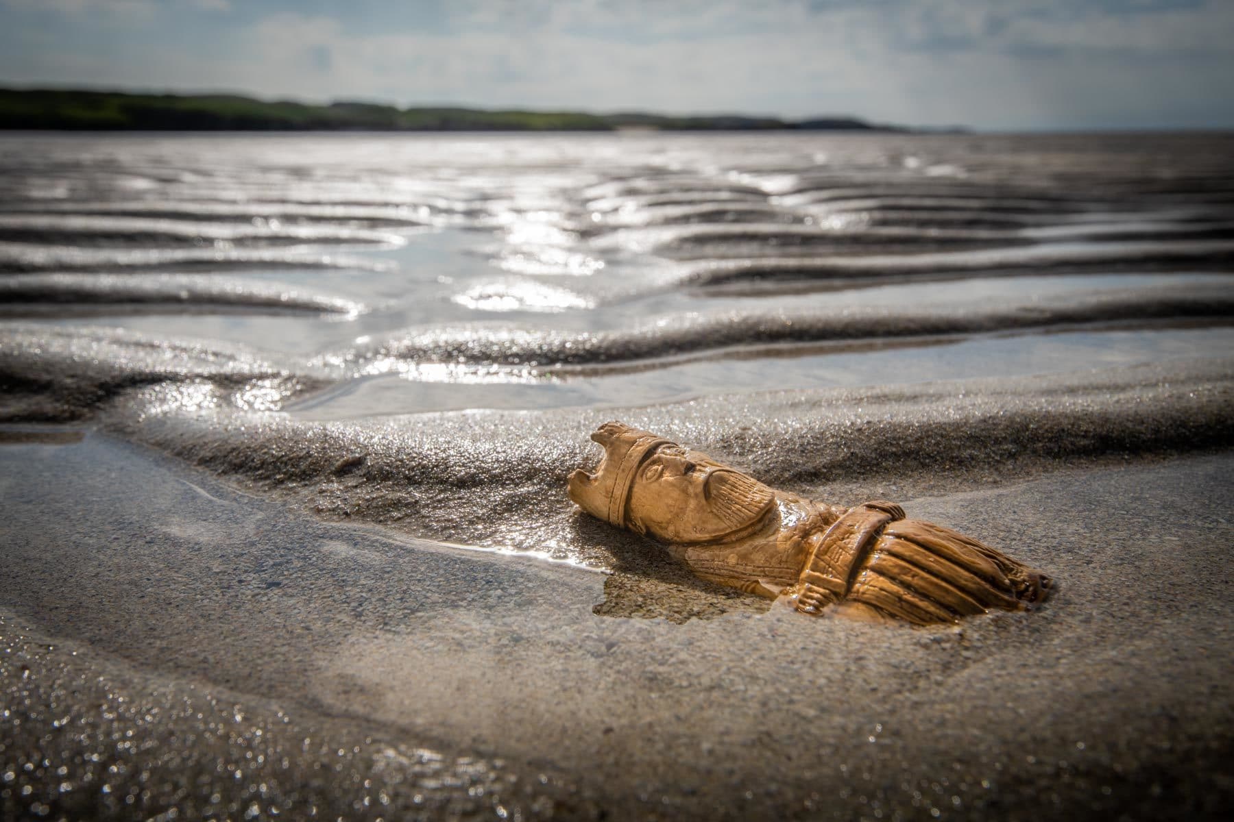 In 1831, a small stone chest was found in a dune of Uig Beach by chance. Inside, 93 chess pieces were stored. But it’s not just any chess game! The pieces are made of walrus ivory and whale tooth and date back to the 12th century. Those figurines travelled a long way to get there. They were probably made in Trondheim, Norway. At the time, the Isle of Lewis was part of the Kingdom of Norway. We will never know why they were buried there, but their faces fascinate me. Half-dramatic, half-comical, I saw six of those figurines at the Nan Eilean Museum in Stornoway. The others are in Edinburgh and at the British Museum in London. Finely chiselled, they are a moving testimony of medieval Scotland. To pay tribute to them, I bought a copy of the king and I took this picture.