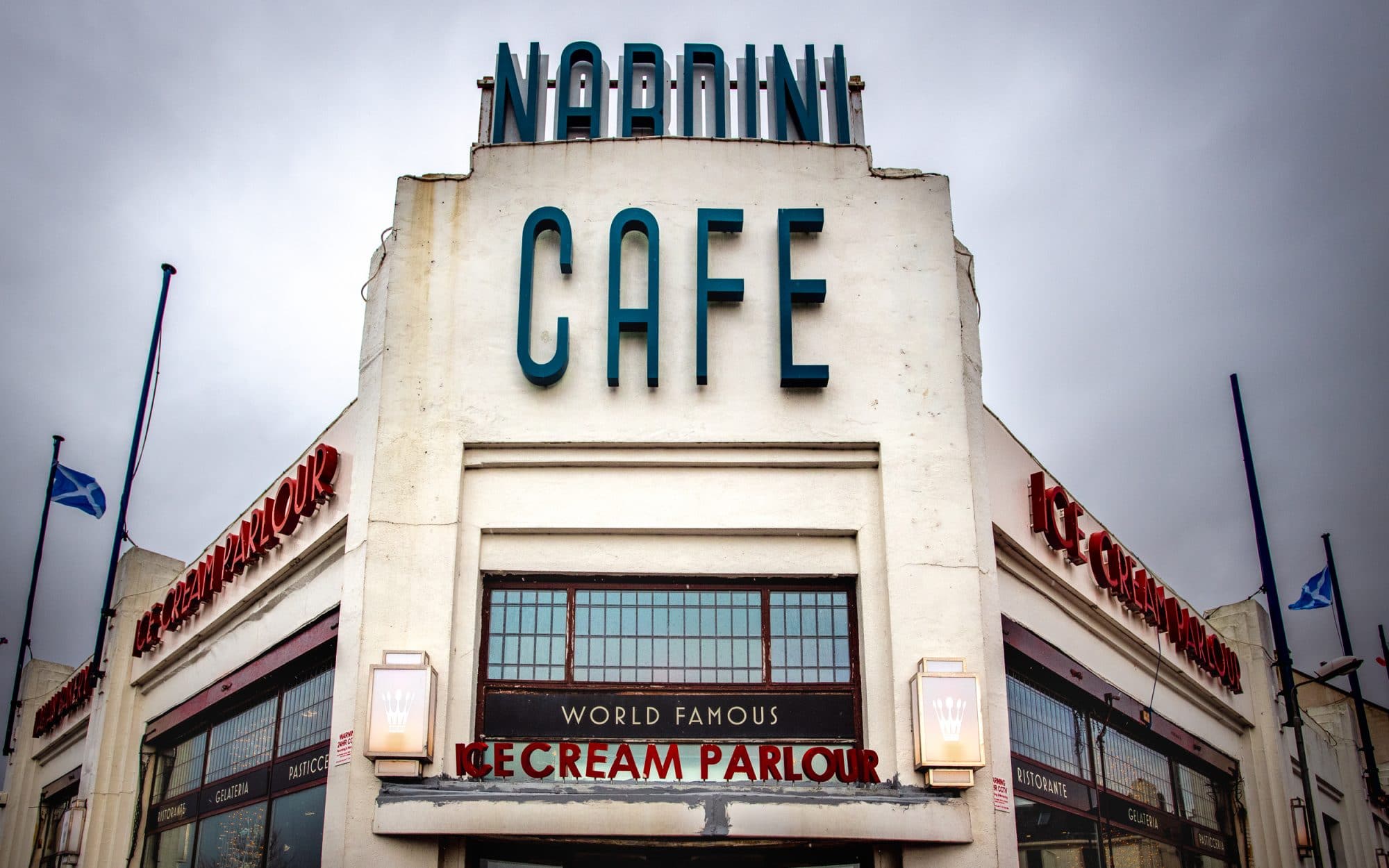 Let’s not kid ourselves: in Scotland, summers are rarely scorching. We do not wait for the month of August to eat ice creams. We do it all year round! And for that, Nardini is an excellent place. Located in Largs, on the seafront, Nardini has a quaint little side. For 80 years, the art deco café has been welcoming gourmets. On pushing the door, I smell good aromas of hot chocolate and mixed fruit. All ice creams are made on site. In front of me, there are more than thirty flavours. I can take 2, 3, 5 or 10 scoops of ice cream. I feel that the choice will be difficult!