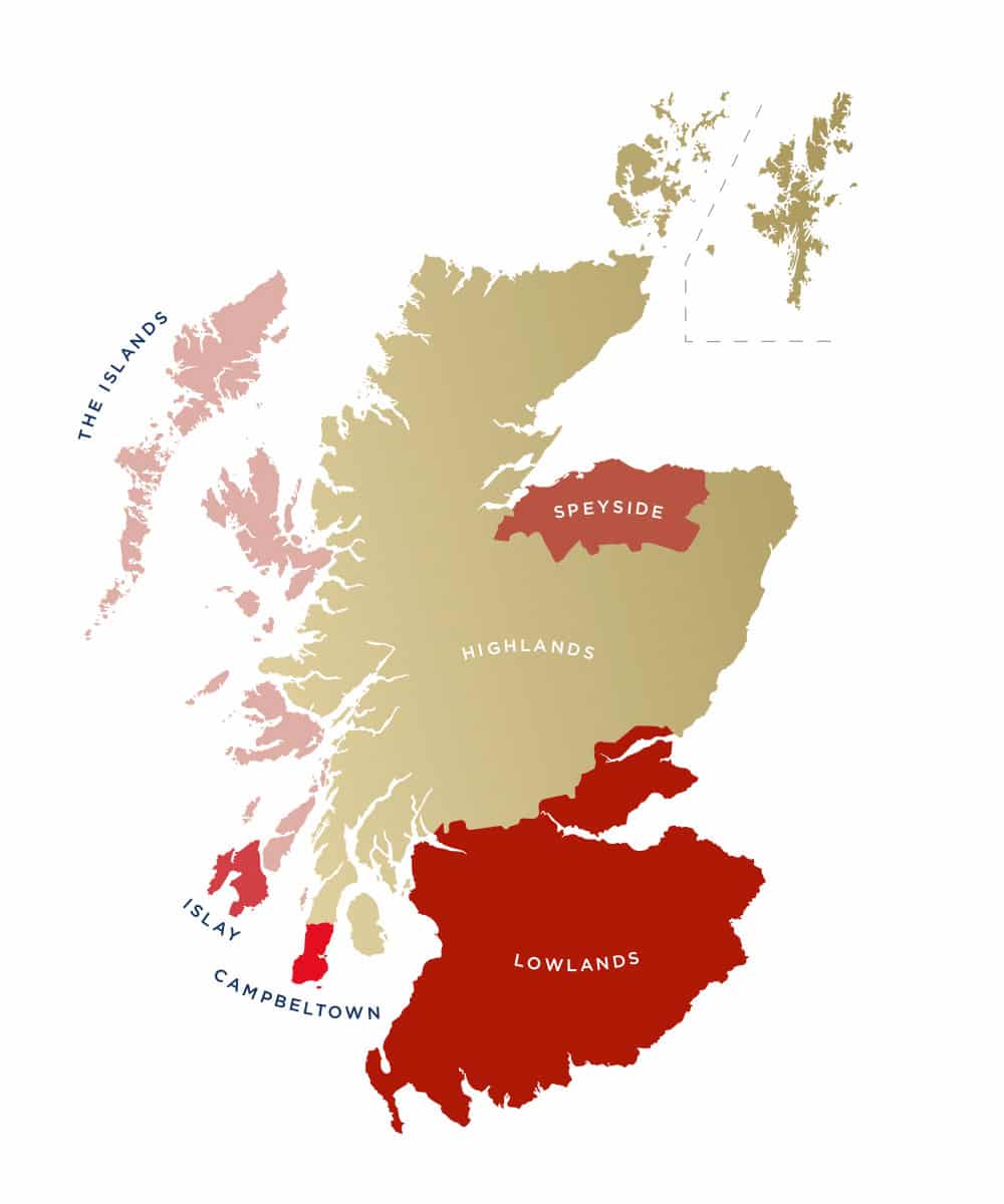 As with French wine and its terroirs, so the character of whisky comes from the land, and climate, where it is produced. In Scotland there are five distinct whisky producing regions.